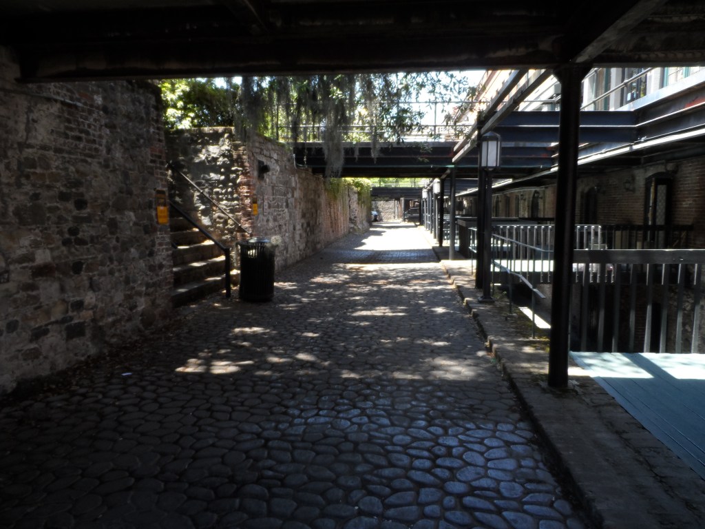 To facilitate the storage and removal of large cotton bales, each level required outside access, leading to the creation of a network of alleys and walkways along the bluff. These passageways became known as “Factor’s Walk,” named after the cotton graders who worked there. Today, these alleys contribute to the distinctive character and historic charm of the hotel. Additionally, many of the riverside streets and nearby buildings are constructed from ballast stone—originally used as ballast in the ships that sailed to Savannah from ports around the world.
