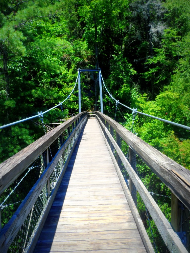 If you’re unable to explore the gorge floor—or if it only whets your appetite for more adventure—the Hurricane Falls Loop Trail is a must. This challenging route begins at the Interpretive Center with a comfortable, rubber-paved path before plunging into the dramatic elevation changes of the North Rim Trail. The trail leads to a suspension bridge that spans the river, offering jaw-dropping views of the gorge 80 feet below. For those seeking more scenic vistas, the rim trails guide visitors to a series of stunning overlooks. Be warned: every trail into and out of Tallulah Gorge is considered very strenuous. If the hike doesn’t leave you breathless, the views from the bridge certainly will.