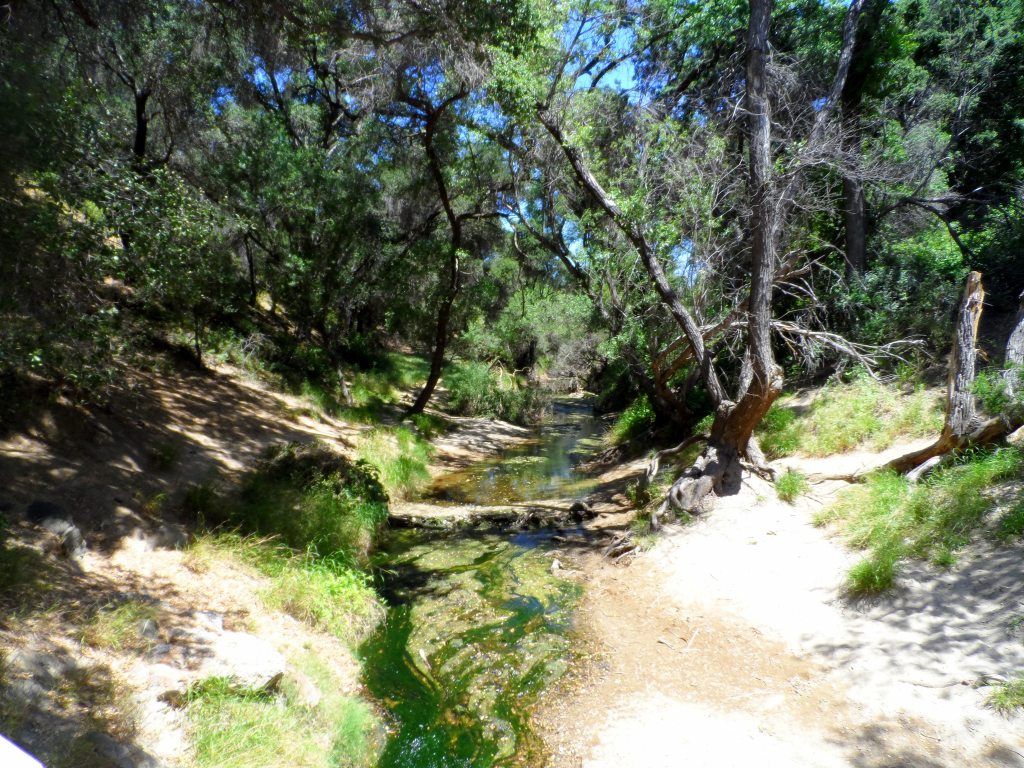 After paying for parking, drive all the way back to the second lot—it’s the closest to the trailhead. Once you park, head back toward the road you arrived on. There, you’ll find a clearly marked entrance that leads down to the backcountry trails. Soon, you’ll cross a bridge over Malibu Creek. From there, just follow the signs and take in the beautiful views.