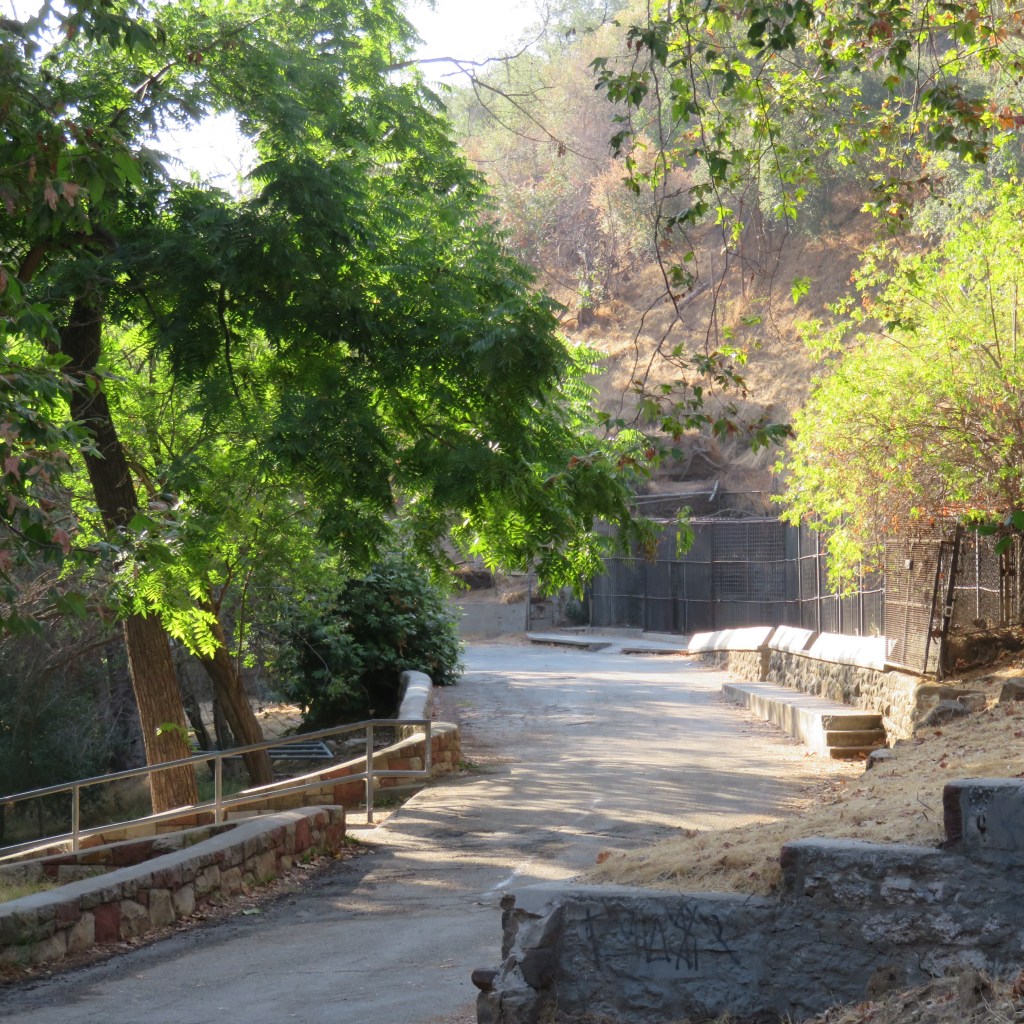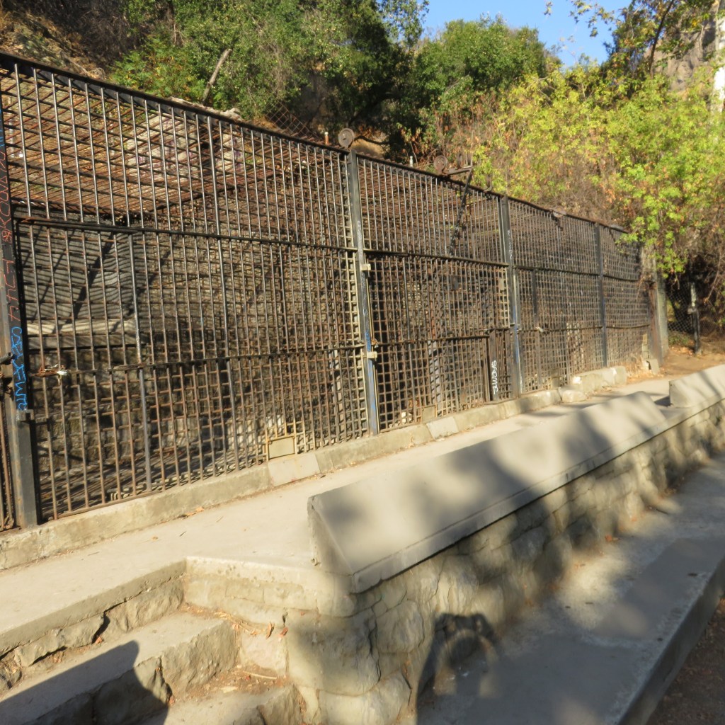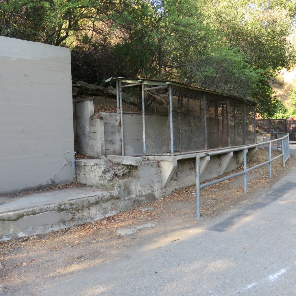 To reach the zoo, take Interstate 5 and exit onto Crystal Springs Drive, then continue to Griffith Park Drive. I parked in the Spring Canyon area, just to the left before Griffith Park Drive curves north. Southwest of this small lot, you’ll find a spacious picnic area, and just beyond that lies the Old L.A. Zoo. You’ll see the former cave enclosures directly ahead, with additional cages, old buildings, and remnants of former zoo facilities perched above them. If you follow the path to the right of the cave enclosures, it winds past several actual cages—some of which remain open for exploration.