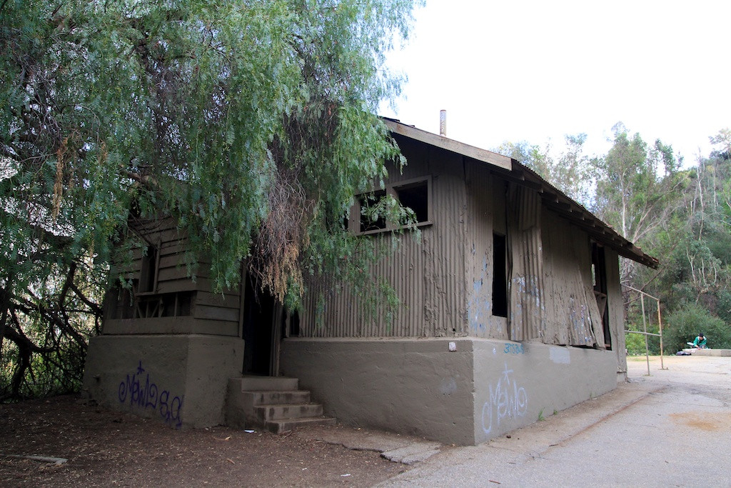 The remnants cling to the hillside of a sunlit canyon, located about two miles down Crystal Springs Road from the present-day Los Angeles Zoo and Botanical Gardens. Carved into the hillside are abandoned animal “habitats” or “grottoes” that resemble the low-budget sets from a high school production of Camelot.