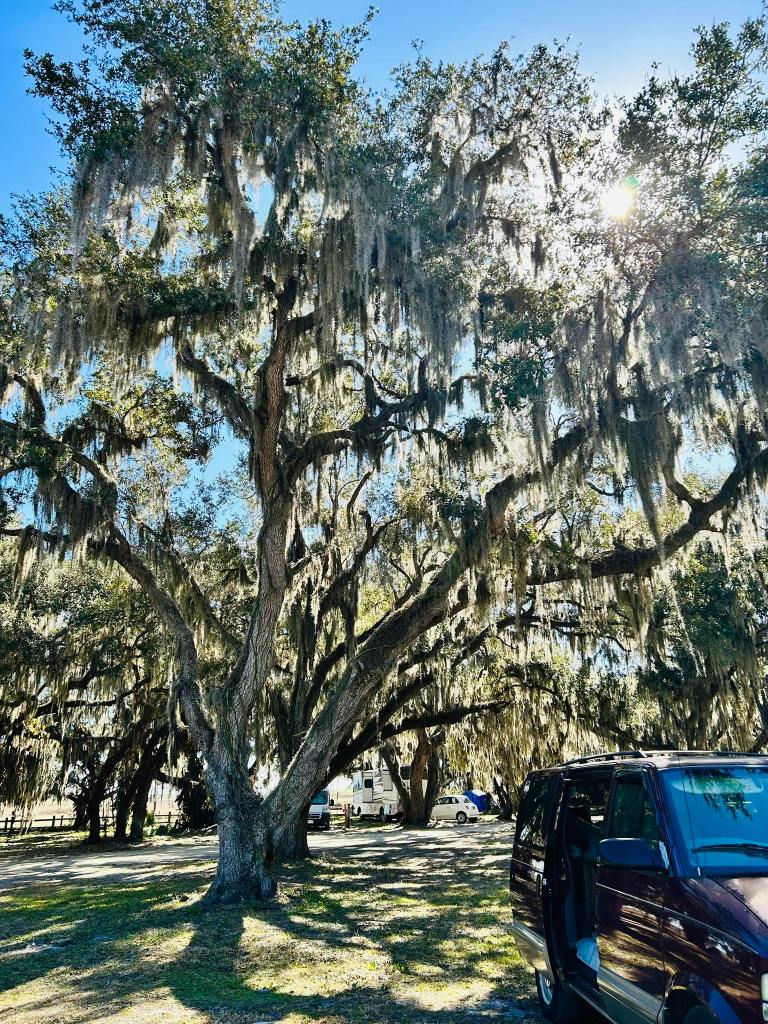 There’s something about old oak trees draped in Spanish moss that always had my heart, and at Coleman Landing in Shady Oaks Recreation Area, that love feels fully realized. The moment you arrive, it’s like stepping into a dream—towering oaks stretching overhead, moss swaying gently in the breeze, and Lake Kissimmee shimmering quietly in the background.