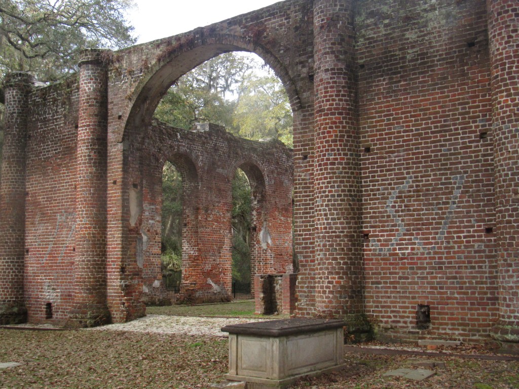 Graves are scattered quietly across the grounds, adding another layer of history to the peaceful setting. Within the ruins themselves rests Colonel William Bull, a man closely tied to the early development of the region. Bull played a key role in assisting General James Oglethorpe with the physical layout of Savannah. In 1733, he surveyed the land and designed the original grid pattern of streets and public squares—an iconic layout that Savannah is still famous for today.