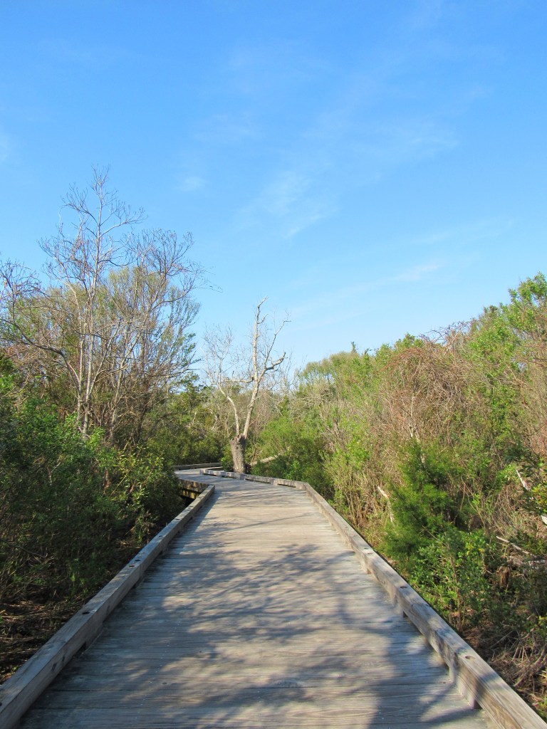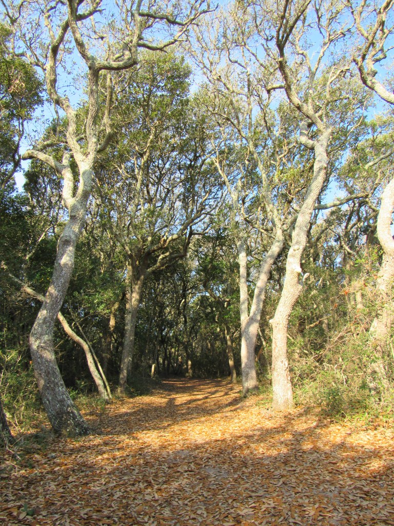 The Elliott Coues Nature Trail offers an enchanting escape into the scenic beauty of Atlantic Beach, North Carolina. Tucked within Fort Macon State Park, this peaceful coastal path winds through a landscape where maritime forest meets salt air, creating a quiet, almost dreamlike setting. Towering, twisted live oaks and other coastal trees stretch overhead, their branches forming a natural canopy that filters the sunlight and dances with the ocean breeze. As you wander along the trail, the sounds of distant waves and rustling leaves replace the noise of everyday life, inviting you to simply take it all in.