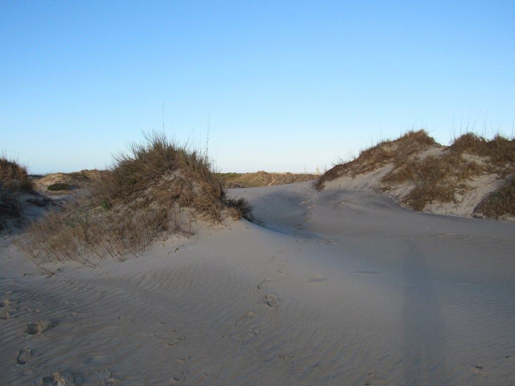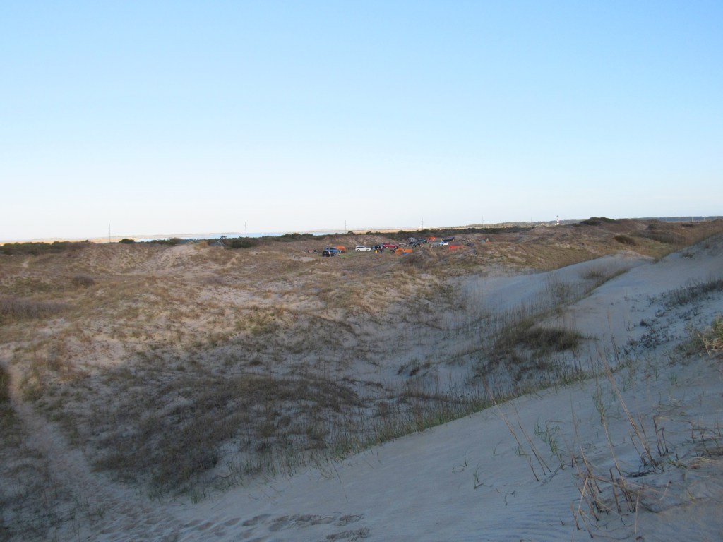 Beach access is available via marked trails that lead over the sand dunes between designated sites, requiring a short hike to reach the shoreline. The beach itself allows both pedestrian use and permitted vehicle access, which results in deep tire ruts along portions of the sand. While this shared use supports fishing and driving along the coast, it can make walking uneven and more difficult in certain areas, especially for those carrying gear or traveling with children.