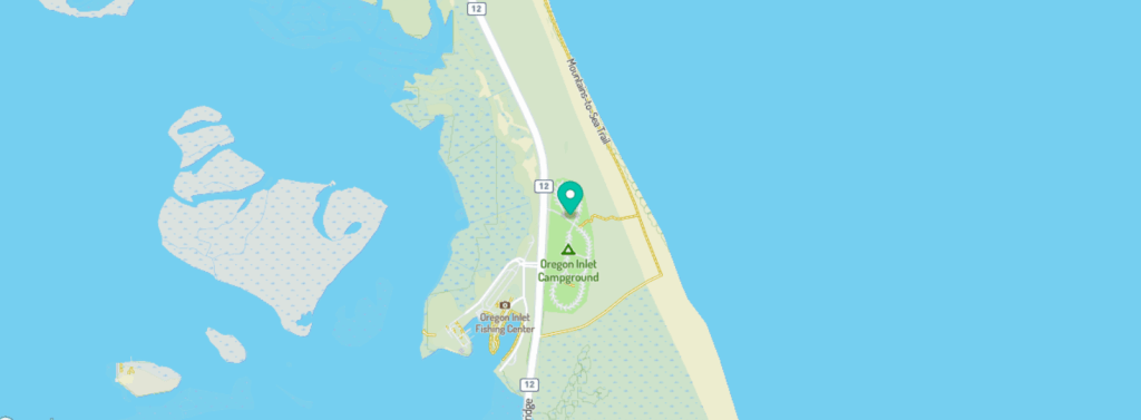 Oregon Inlet Campground, the northernmost campground within Cape Hatteras National Seashore, sits along the Atlantic Ocean just minutes from Oregon Inlet and the charter fleet at the Oregon Inlet Fishing Center. Managed by the National Park Service, it’s tucked between towering sand dunes and Highway 12 on North Carolina’s Outer Banks.